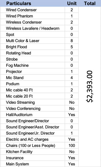The OCC hall a 6,000 square feet main hall and a 2,000 square feet kitchen space, a modern full-size commercial kitchen containing high end equipment as well as a walk-in refrigerator and freezer. Often when planning an event it can be helpful to know some of the details about the facility and how it is put together. Therefore, below are listed detail specifications for each of ORISS CULTURE CENTER major elements.